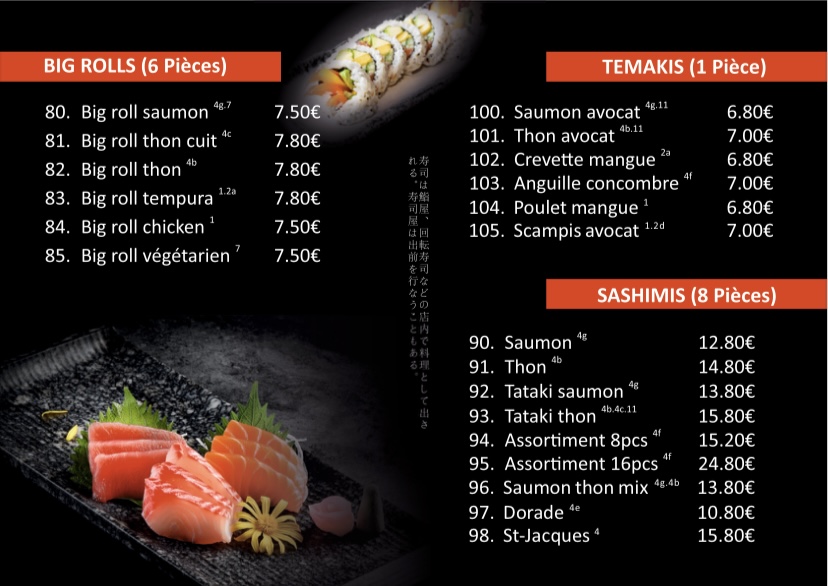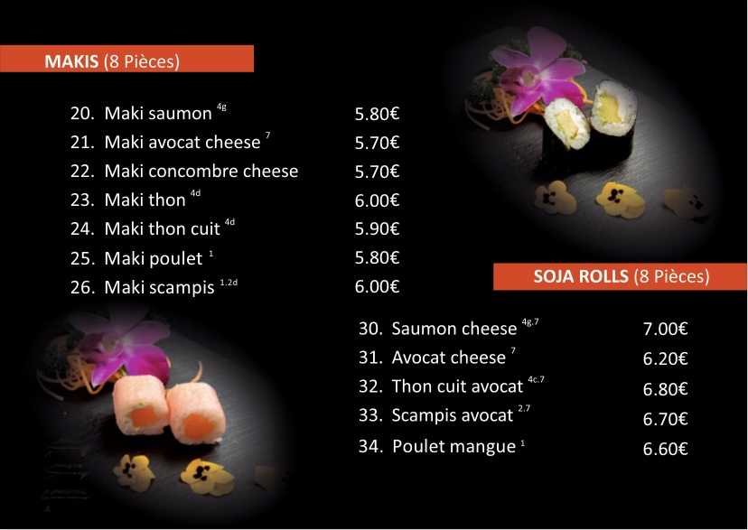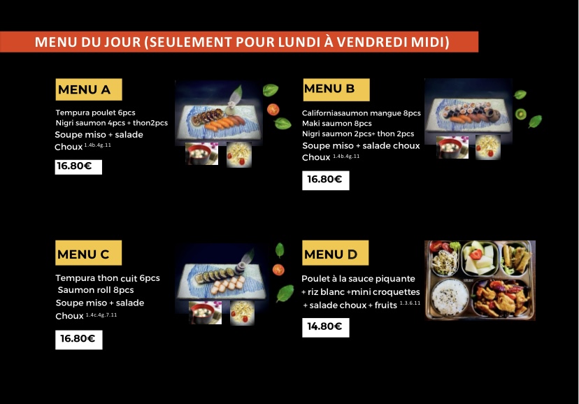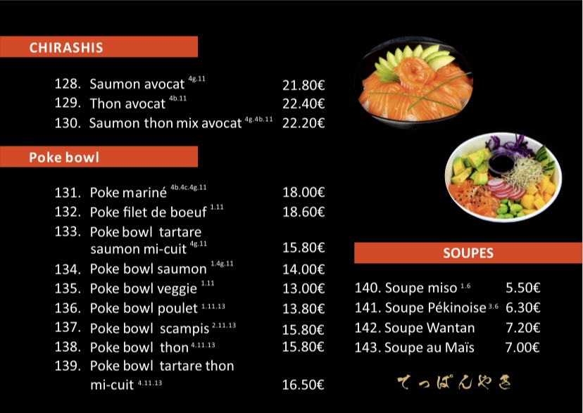 Restaurant Sashimi offers a diverse and carefully crafted menu, focusing on fresh, high-quality ingredients with a clear emphasis on traditional Japanese flavors. Among the standout offerings is the Brochettes Yakitori Poulet, a delicious skewered chicken dish that is grilled to perfection, offering a smoky, tender bite with a hint of savory sweetness. The menu also highlights a variety of sushi rolls, sashimi, and hearty noodle dishes, providing a wide range of flavors to suit all tastes. Whether you're a fan of seafood or prefer something more filling, the selection ensures every guest will find something to satisfy their palate. The fusion of authentic Japanese techniques with subtle French influences gives the restaurant’s dishes a unique twist, making it a noteworthy destination for those seeking both tradition and innovation. The balance between quality, presentation, and flavor truly sets the restaurant apart.